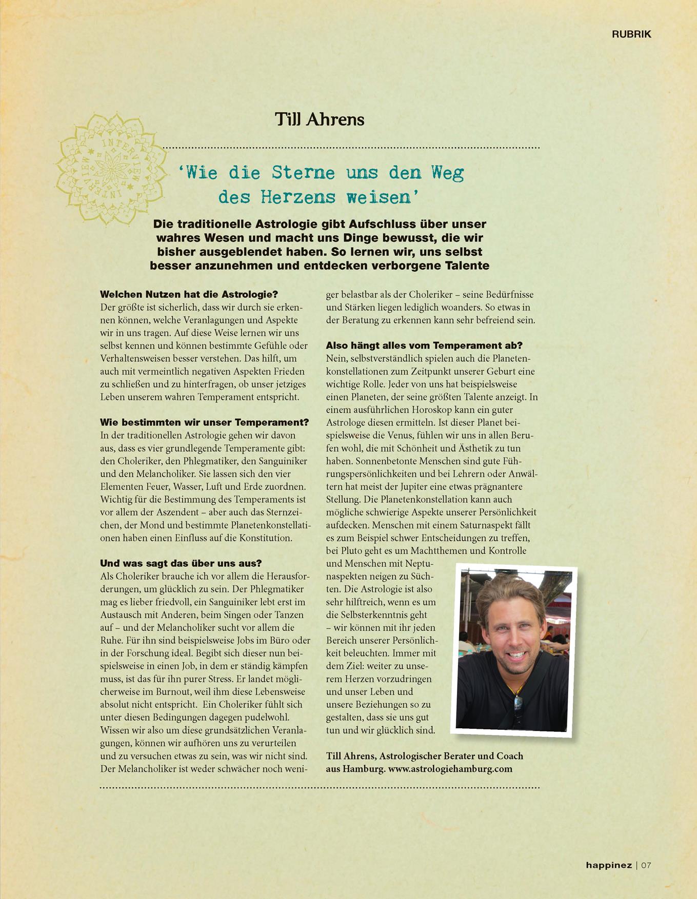 上周接受德國雜誌Happinez 訪問,談到關於性格占星和醫療占星,